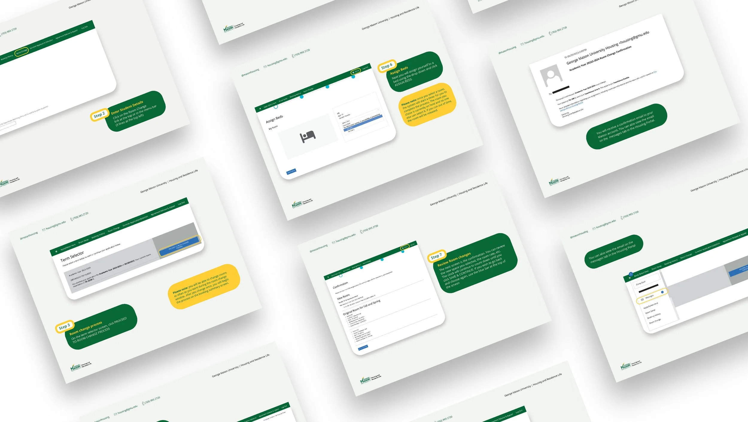 George Mason Universityβs Residential Housing Department needed a visual guide using refreshed screenshots, to show students how to use the housing portal to switch to available spaces on campus or to request room swaps with other residents.