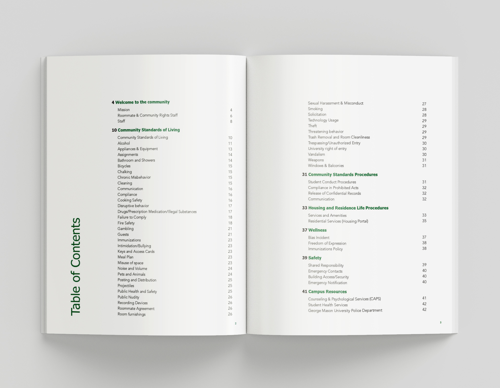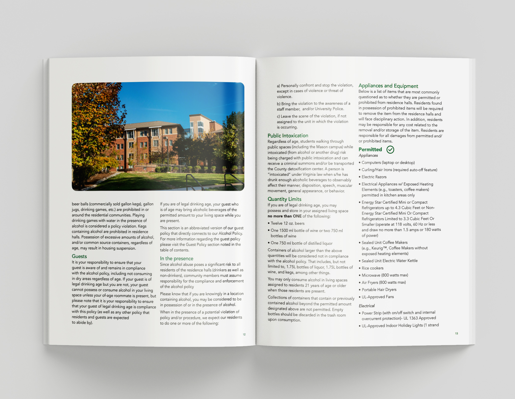 Modernized George Masonβs Universityβs residential handbook to improve readability and user experience. The project involved restructuring content for better flow, and applying a clean, consistent design system aligned with the institutionβs branding.