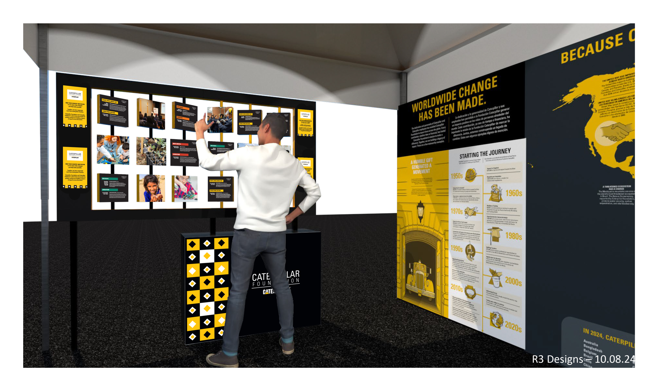 Collaborated with a senior designer during the early development stages of Caterpillar’s 100th anniversary world tour. The tour is scheduled to visit over 130 Caterpillar facilities worldwide in 2025, offering employees and visitors an engaging look at the company’s history, innovations, and future vision.